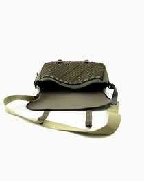 - Leather trim and fastening straps
