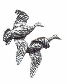 This hand sculpted pewter brooch depicting a pair of flying ducks is manufactured in the UK. Made of quality pewter showing brilliant detail, this brooch is the perfect finishing touch to pin to your jacket, hat or handbag.