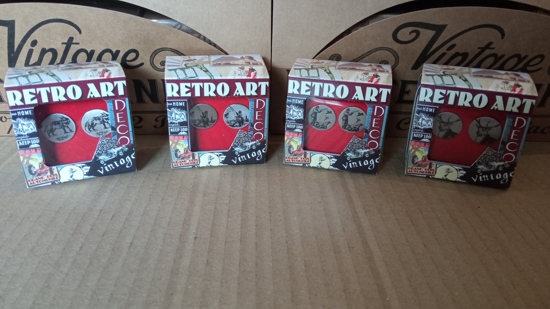 Discover 4 unique retro cufflink designs that will elevate any ensemble. Handkerchief sets sold separately at https://tinyurl.com/2u4yw8wr. These original designs are guaranteed to bring a touch of sophistication to your look.