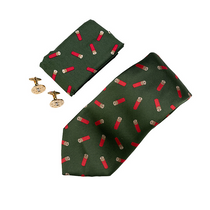- Set of tie, hanky and cufflinks with cartridge motif